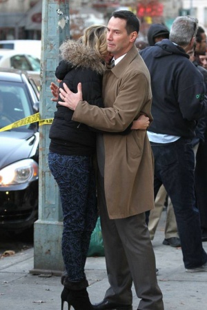 Голливудский актер Киану Ривз был замечен на съемках своего нового фильма "Дочь Бога", которые сейчас проходят на улицах Нью-Йорка.