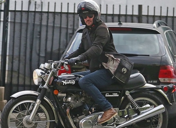 Киану на любимом мотоцикле Norton Commando, в винтажной байкерской куртке рассекал по улицам Голливуда. Фотографы запечатлели актера, когда он покидал кафе после обеда с другом.