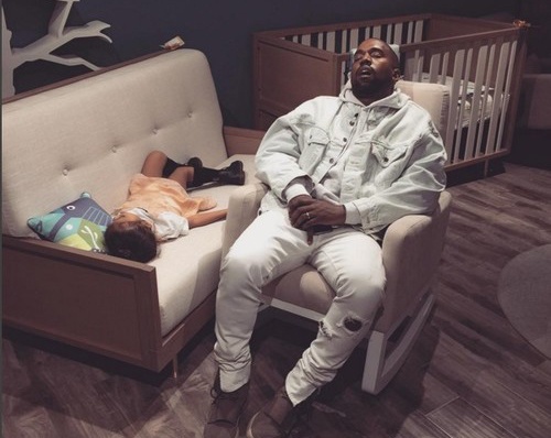 Также Ким поделилась фото спящих дочки Норт и Канье, которые "отдыхают" после очередного "дежурства" по уходу за новорожденным малышом – заснули прямо в магазине детских товаров во время шопинга!