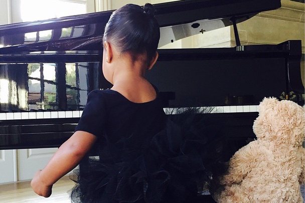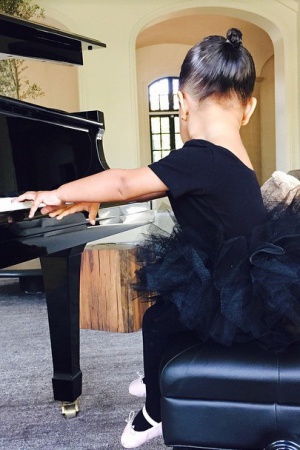 На новых снимках дочь Канье Уэста и Ким Кардашьян одета в балетную пачку, а ее волосы собраны в маленький пучок. Девочка гуляет по дому, позирует у пианино и вызывает умиление у тех, кому посчастливилось увидеть ее новый образ.