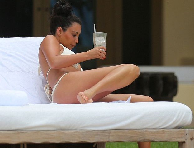 На днях красотку Ким Кардашьян сфотографировали в Мексике, где 33-летняя звезда принимала солнечные ванны, попивая коктейли. На новых снимках Ким появилась в стильном белом бикини, продемонстрировав свои знаменитые аппетитные формы.