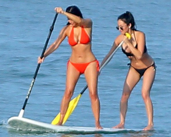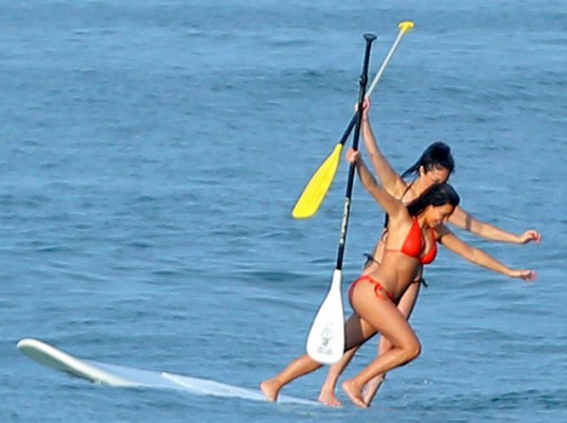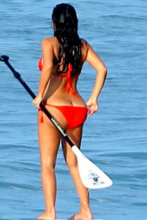 33-летняя Ким Кардашьян в красном бикини покоряла волны на падлборде. Правда, папарацци так и не удалось запечатлеть супругу Канье Уэста на гребне волны, зато веслом звезда хорошо помахала.