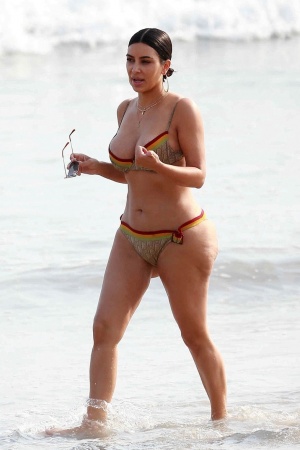 Ее сестра Хлои говорит, что у Ким Кардашьян "самое лучшее тело". Однако, судя по последним фотографиям светской львицы в бикини, сделанных папарацци, с этим можно поспорить.