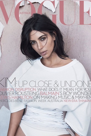 Впервые после родов звездная мама, Ким Кардашьян, позирует для обложки модного глянца Vogue Australia.