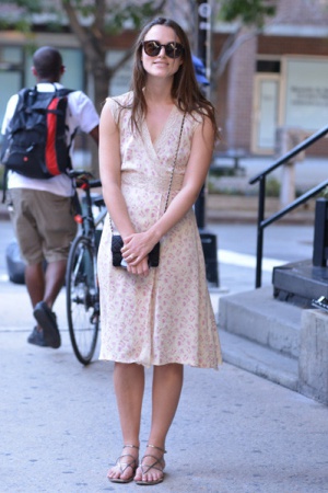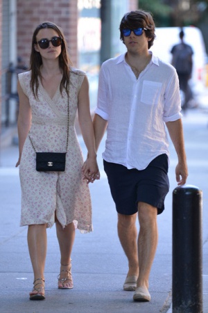 Найтли и Райтон были замечены во время прогулки по Трайбеке в Нью-Йорке. Пара шла за руку и не сводила друг с друга влюбленных взглядов. Актриса и ее муж-музыкант выглядели просто и стильно: их легко было бы принять за обычных нью-йоркцев. В этот день на Кире было нежнейшее платье с запахом пастельного оттенка с цветочным узором. Образ дополнили любимые аксессуары: золотистые сандалии и маленькая черная сумка Chanel.