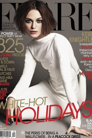 Кира Найтли появилась на обложке журнала Flare. Авторы фотосессии сделали актрисе "геометрическую" стрижку и постарались максимально подчеркнуть Кире глаза.