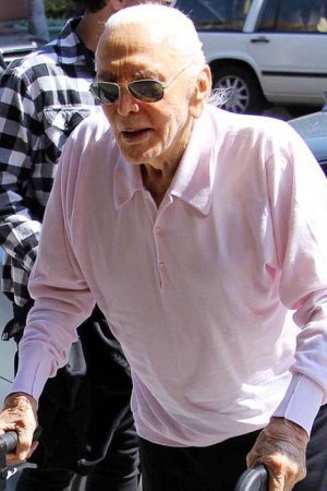 Ему уже 97 лет и нелегко передвигаться самостоятельно, особенно после перенесенного инсульта в 1996 году, но Кирк Дуглас показал, что крутой парень из Голливуда всегда будет на высоте.