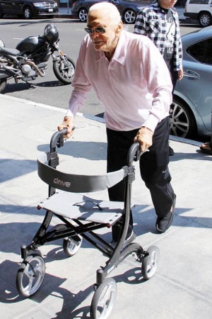В четверг днем легендарный актер был замечен на улицах Беверли-Хиллз. Актер, который испытывает явные трудности при ходьбе, не стал пользоваться инвалидной коляской, а воспользовался своеобразными ходунками, с помощью которых весьма резво прошелся от машины до нужного ему места.