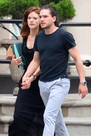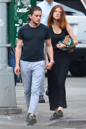 Звезды "Игры престолов", которые также являются парой в реальной жизни, Кит Харингтон и Роуз Лесли, попали в объектив папарацци, когда гуляли по Нью-Йорку мило держась за руки. 29-летний Кит и Роуз, которой также 29, были в городе чтобы посетить некоторые мероприятия Недели моды.