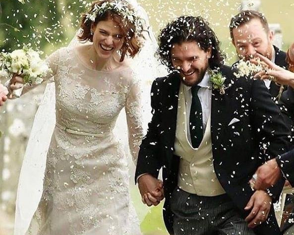 Звездная пара популярного фэнтезийного телесериала "Игра престолов" Кит Харингтон и Роуз Лесли 23 июня отметили первую годовщину свадьбы. Артисты и не заметили, как свой экранный любовный роман воплотили в жизнь.
