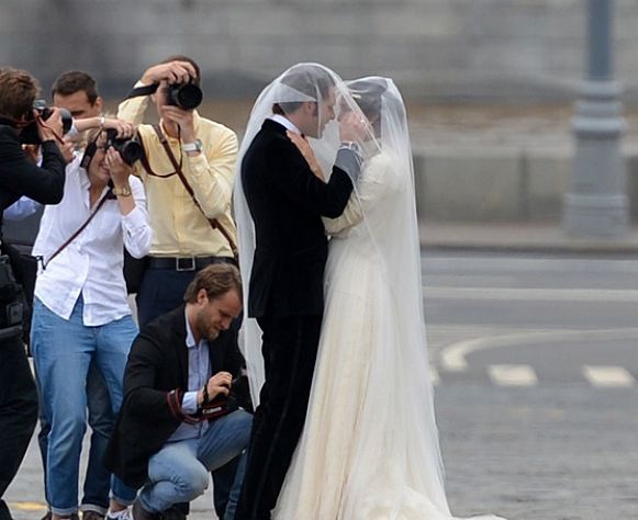 Свадьба была проведена в центральном ЗАГСе Москвы, а затем свой союз они скрепили венчанием в Сретенском монастыре. Бракосочетание пара отметила в ресторане "Коста Дива".