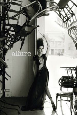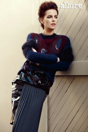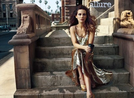 Перед выходом своего нового фильма "Вспомнить все" Кейт Бекинсейл снялась для журнала Allure (август 2012). 38-летняя английская актриса предстаёт в оранжевом твидовом платье из Calvin Klein Collection.