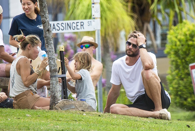 Папарацци засняли Хемсворта с семьей во время ланча, который они решили провести на свежем воздухе в одном из парков города Байрон-Бей, где они в настоящий момент строят гигантский особняк размером с аэропорт. Расположившись на траве, Крис и Эльза наслаждались прохладительными напитками и легкими закусками, играли с детьми и много смеялись.