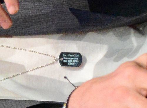 На недавней пресс-конференции фильма "Гонка" Крис продемонстрировал аксессуар, вызывающий умиление. На его шее красуется медальон с номером телефона его супруги и подписью: "В случае непредвиденных ситуаций". Обычно такие украшения вешают на ошейник собакам, но ведь и люди, к сожалению, могут внезапно потеряться или попасть в беду. По крайней мере, Эльза Патаки может быть уверена, что ей сразу же сообщат, если что-то произойдет с ее мужем. Что ж, будем надеяться поводов использовать этот медальон по назначению все-таки не подвернется и супругов ждет долгая и счастливая жизнь.