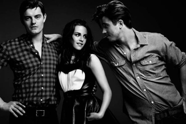 Кристен Стюарт, Гаррет Хедлунд и Сэм Райли в фотосессии для журнала M le Monde, посвященной выходу фильма "На дороге" по роману Джека Керуака (лента сейчас участвует в конкурсе Каннского кинофестиваля).