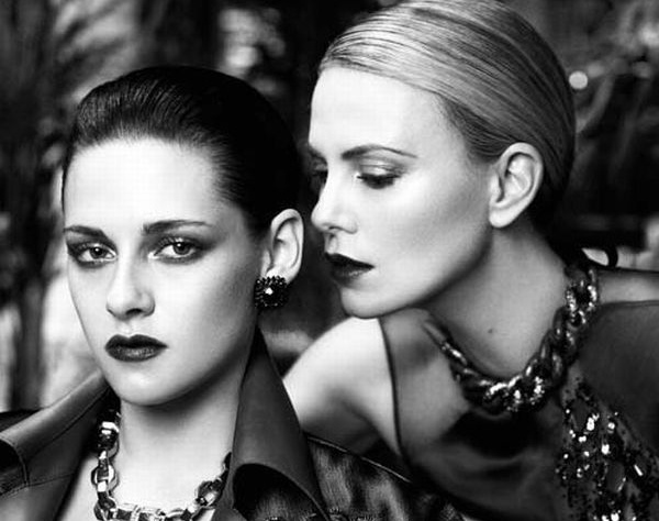 Коллеги по фильму "Белоснежка и охотник" предстали на обложке июньского номера журнала Interview с ярким макияжем в стиле "вамп". В новой дарк-фотосессии Кристен и Шарлиз продемонстрировали свои роскошные фигуры в откровенных нарядах от кутюр, а также в интервью с изданием рассказали о совместной работе: