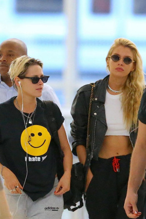 Вчера папарацци запечатлели звездную пару в аэропорту Нью-Йорка. По данным издания Daily Mail, на выходных Кристен вылетела из Лос-Анджелеса в одиночестве, но прибыла в "Большое яблоко" уже в сопровождении модели. Фотографов Стюарт встретила в черной футболке с улыбающимся смайликом, под которым виднелась надпись: "Я вас ненавижу". Максвелл предпочла более сложный образ, сочетав спортивные штаны с кожаной курткой и ботинками на шнуровке.