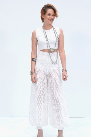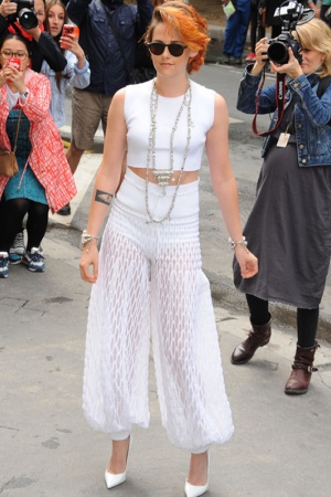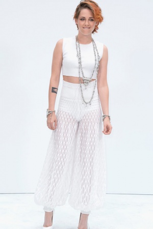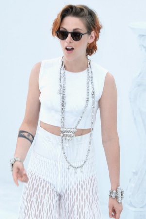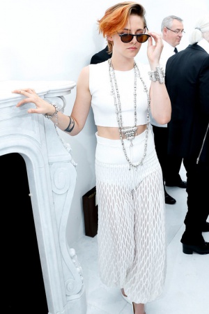 В новом образе Стюарт появилась на показе Chanel в рамках Недели высокой моды в Париже, где повергла публику в шок. Кроме сомнительной стрижки волосы актрисы не отличала и укладка.