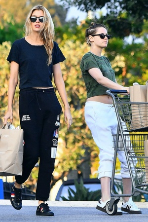 Для этой прогулки Кристен выбрала короткую футболку расцветки хаки, широкие белые спортивные штаны и кеды от adidas. А Стелла отправилась по магазинам в образе total-black, надев черную футболку, спортивные штаны и кроссовки. Чтобы скрыться от яркого солнца и назойливых взглядов, девушки взяли с собой темные солнцезащитные очки.