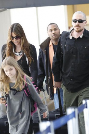 39-летний актер Кристиан Бэйл вместе с женой Сиби Блазик и 8-летней дочкой Эммелин приземлились вчера в аэропорту Лос-Анджелеса. До этого Бейл вместе с Эми Адамс был сфотографирован в Нью-Йорке на съемках фильма "Американский переполох", ради которого актер и решился на такие метаморфозы: расстался со своими волосами и даже немного поправился.