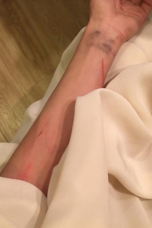 Асмус опубликовала в Instagram фотографию своей руки, на которой видны ссадины и порезы. "И так каждый раз #Гамлет #психологическийтеатр ))))) Спасибо всем, кто был сегодня! Было жарко!)))", — написала актриса.