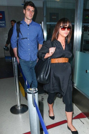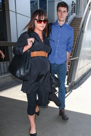 Беременность 34-летней актрисы стала очевидной, когда 23 мая она появилась в аэропорту Лос-Анджелеса с заметно округлившимся животиком. Риччи была одета в черное платье-рубашку с широким коричневым поясом под грудью.