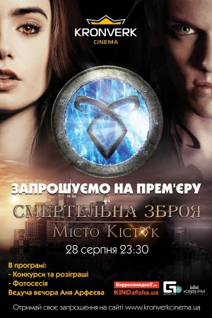 Сеть кинотеатров "Kronverk Cinema" приглашает всех желающих на уникальную ночную премьеру фильма "Орудие смерти: Город костей"!