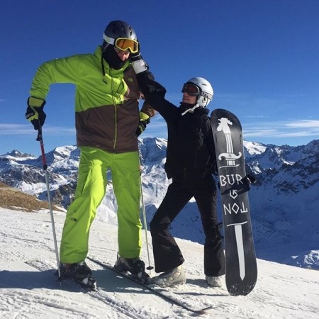 Ксения Собчак поделилась очередным снимком с курорта Куршавель, куда она отправилась перед Новым годом со своим супругом Максимом Виторганом. На фото Ксения и Максим стоят на вершине холма, готовясь к спуску. Хорошо заметно, что Виторган не очень уверенно стоит на лыжах, а Ксения опирается на плечо мужа.