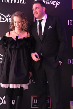 Для мероприятия Собчак выбрала платье в стиле Аллы Пугачевой – объемное и немного балахонистое. Черный наряд разбавляли рюши и белый подъюбник.