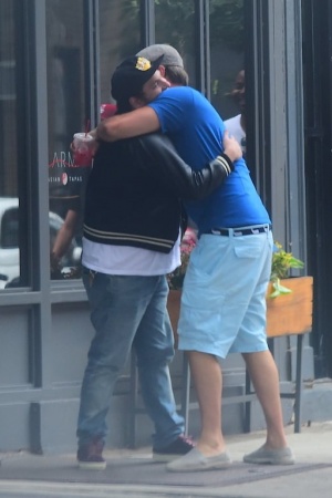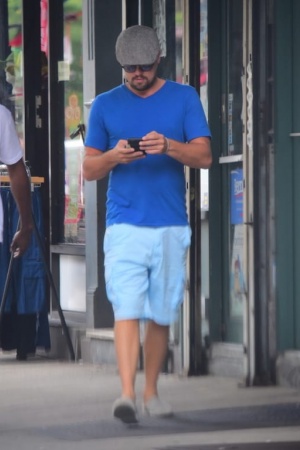 Актер был одет в футболку, мешковатые шорты, а весь его "маскировочный" костюм состоял из кепки и темных очков.