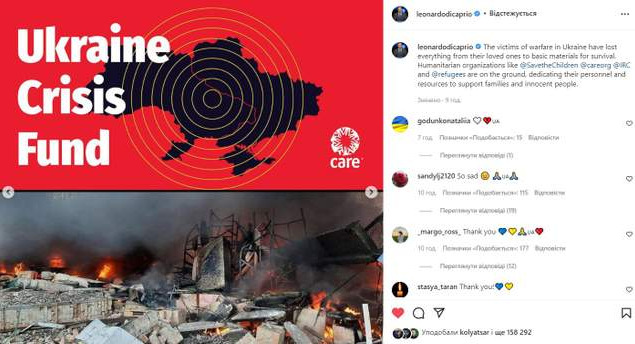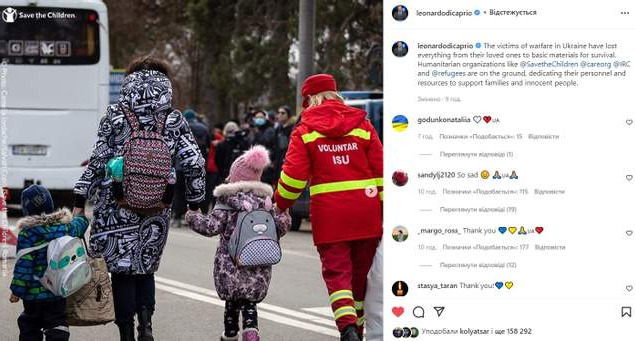 Жертвы войны в Украине потеряли все: от своих близких к основным материалам для выживания. Гуманитарные организации, такие как @SavetheChildren @careorg @IRC и @refugees, работают на местах, посвящая свой персонал и ресурсы для поддержки семей и невинных людей, – сказал ДиКаприо.