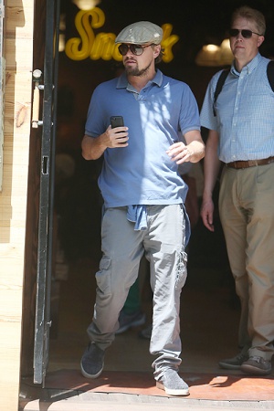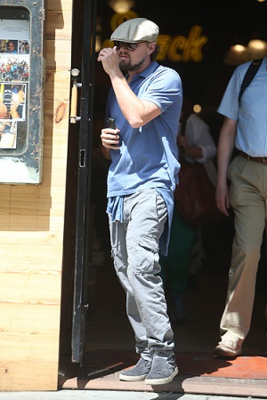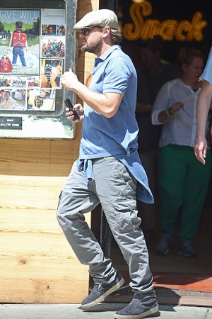 Манекенщица была одета в джинсовые шорты с отворотами, светло-голубой топ и синий жакет на молнии с укороченными рукавами. Лео выбрал голубую рубашку, серые брюки и любимую кепку. Папарацци видели, как пара направилась в магазин кожаных изделий Will Leather Goods в районе Сохо.