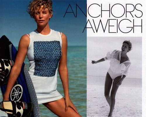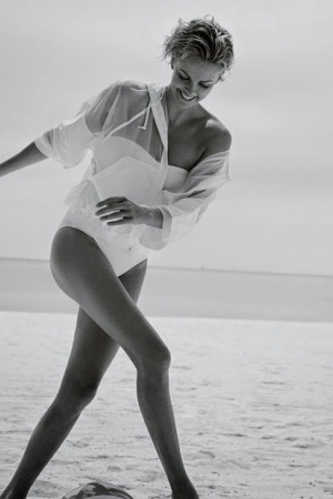 Местом проведения съемок стал один из пляжей Флориды, а автором снимков выступил настоящий гуру глянцевой фотографии Марио Тестино, уже не раз работавший с Терон.
