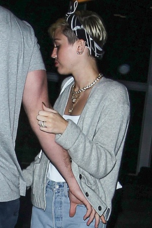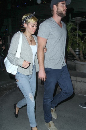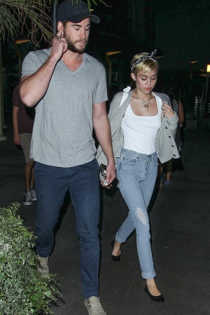 20-летняя Майли и 23-летний Лиам отправились вдвоем в кино. Несмотря на то, что молодые люди разорвали помолвку, на девушке было надето обручальное кольцо с 3,5-каратным бриллиантом. Парочка периодически бралась за руки и улыбалась друг другу. Это был их первый совместный выход за последние пять месяцев.