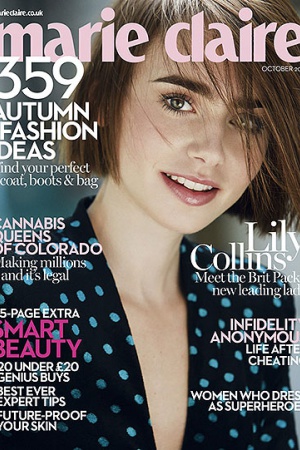 Лили Коллинз украсила обложку октябрьского номера журнала Marie Claire, в интервью которому рассказала о взрослении в семье знаменитости (Лили - дочь легендарного музыканта Фила Коллинза) и о том, почему теперь рада, что не получила роль в популярном сериале "Сплетница".