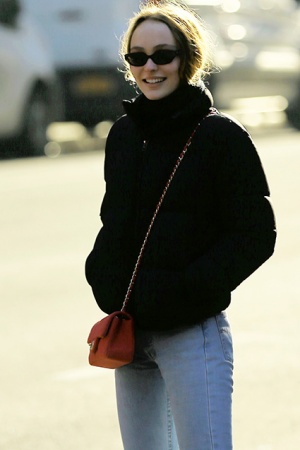 Для свидания дочь Джонни Деппа и Ванессы Паради выбрала комфортный образ. Она была одета в черный укороченный пуховик, синие джинсы и черные кроссовки, а аксессуарами ей послужили солнечные очки и красная сумка от Chanel, надетая через плечо.