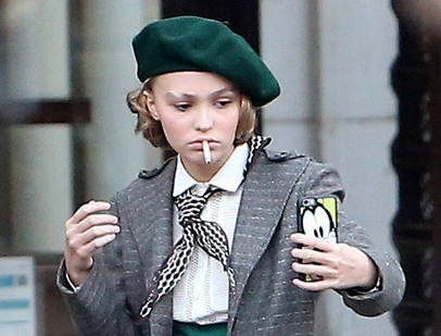 На днях 16-летняя мисс Депп была замечена в Париже, во время съемок фильма "Планетарий". По сюжету действие ленты разворачивается в 30-е годы, так что на Лили соответствующий наряд. И даже сигарета в руках.