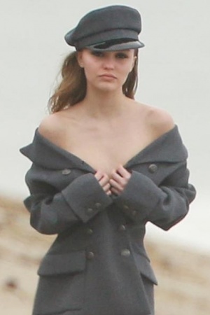 Вчера дочь Джонни Деппа и Ванессы Паради приняла участие в фотосессии на пляже в Малибу. Юная модель позировала в сером кепи и жакете, надетом на голое тело. Мечтательная и расслабленная калифорнийская атмосфера, отсутствие солнца и легкая дымка придали образу Лили-Роуз некоторую загадочность и сексуальность. Оголив плечи и сняв обувь, она позировала фотографу, прогуливаясь по береговой линии и лишь изредка улыбаясь.