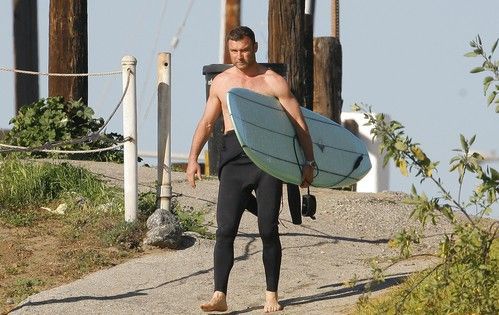 Ливу не терпелось опробовать новую доску для серфинга, которую ему подарила его возлюбленная Наоми Уоттс. Что ж, похоже, первое испытание доска прошла с блеском - актер выглядел крайне довольным своим днем на пляже.