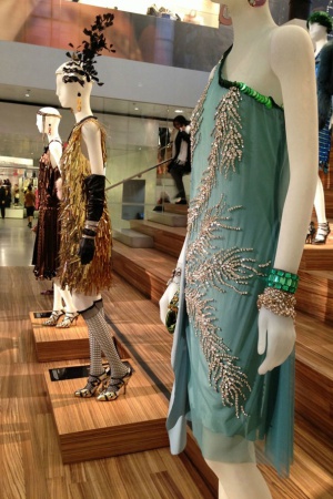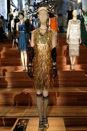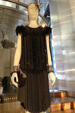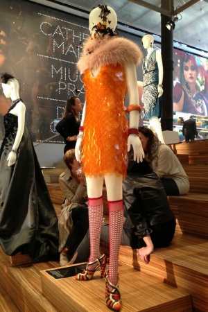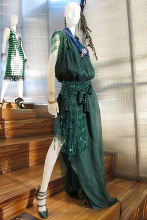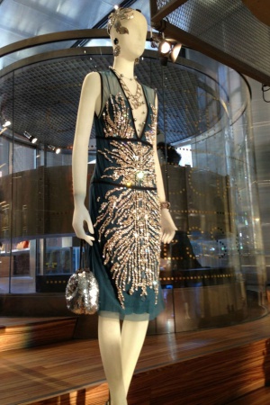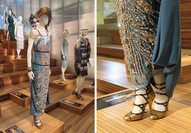 О костюмах к фильму "Великий Гэтсби" стали писать практически сразу, как только появились первые промо-фото. Словно хотели нас заранее предупредить: не ругайтесь и не пугайтесь – платья не очень будут соответствовать эпохе, зато они от Prada и Miu Miu (что практически одно и то же, Miu Miu – дочерняя компания Prada). В мастерских Миуччи Прада было сшито для фильма 40 платьев, которые позже выставили в Нью-Йорке на всеобщее обозрение. Красиво, что тут скажешь! Настолько красиво, что можно ослепнуть: горят синтетическим огнем платья от Prada и Miu Miu, переливаются всеми огнями радуги настоящие драгоценности от Tiffany & Co, сверкают конфетти и фейерверки, свет дробится в хрустале и искрится пузырьками в шампанском Moët & Chandon …