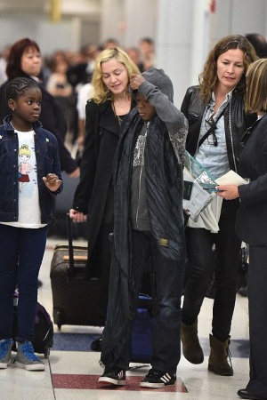 56-летняя королева поп-музыки была сфотографирована в аэропорту Нью-Йорка, куда прилетела из Испании вместе со своими детьми.