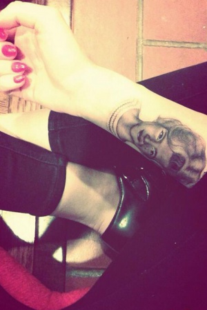Певица решила изобразить на своей руке портрет бабушки в честь ее дня рождения. "Потому что я ее любимица, а она моя," - объяснила Майли с своем Твиттере. Рисунок выполнила Кэт фон Ди. Уже не в первый раз Майли обращается к этому мастеру: Кэт сделала певице три татуировки. Новое изображение исполнено в стиле ретро-портрета, где бабушка звезды еще молода.
