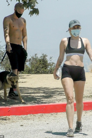 Звезду заметили на улицах Лос-Анджелеса во время режима изоляции. Звезда вместе со своим возлюбленным музыкантом Коди Симпсоном вышли выгулять собаку.