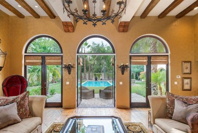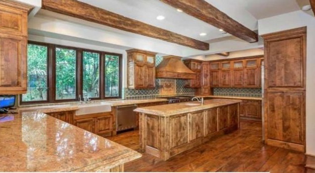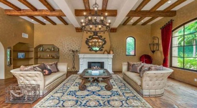 В доме есть шесть спалень, шесть ванных комнат, большая кухня и територия около дома с бассейном. Весь интерьер выдержан в тосканском стиле.