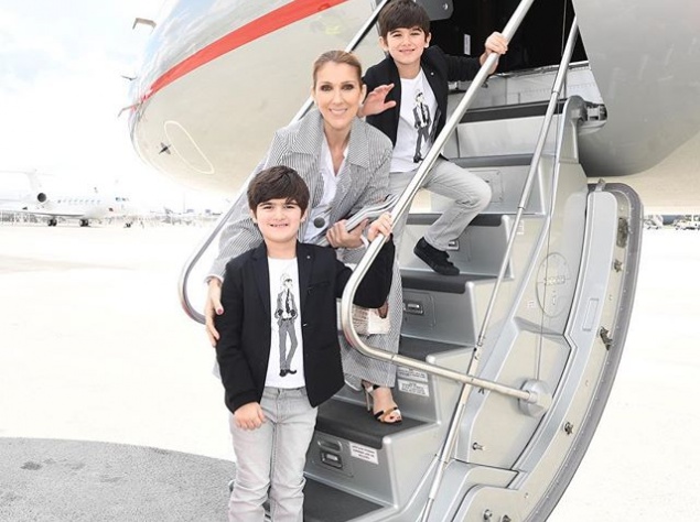 В время последнего путешествия с детьми Дион сделала очень трогательный и в то же время стильный снимок с сыновьями Эдди и Нельсоном. На фото близнецы вместе с мамой позируют, подымаясь по трапу самолета. Они уже так выросли, настоящие джентльмены!