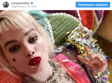 Актриса Марго Робби показала снимок себя в образе злодейки Харли Квин - героини нового фильма Хищные птицы. Снимок за два часа собрал более 1,5 миллионов лайков.
