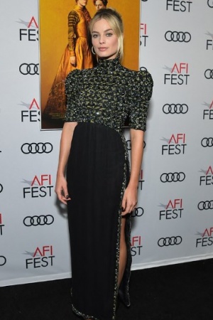 Несколько дней назад популярная австралийская актриса приняла участие в премьере кинофильма "Две королевы", в котором исполнила одну из главных ролей. Тем не менее, знаменитая блондинка не перестает блистать на красных ковровых дорожках. Например, вчера ночью Марго Робби прибыла на кинофестиваль "AFI", который проходит в эти дни в Голливуде. При этом звезда телеэкранов предпочла надеть платье в пол, декорированное пикантным боковым разрезом, фактурными рукавами-фонариками и элементами вышивки с люрексом. Примечательно, что металлический отблеск верхней части аутфита гармонично сочетался с макияжем кинодивы.