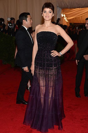 Появившаяся на ежегодном балу Института платья, французская актриса Марион Котийяр мгновенно приковала к себе восхищенные взгляды мужчин. Для вечера девушка выбрала черно-фиолетовое платье в пол от Dior, с прозрачной юбкой и открытыми плечами.