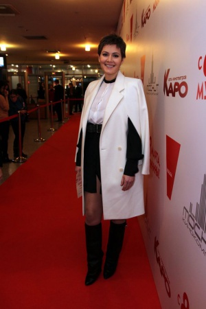 На премьеру фильма "С 8 марта, мужчины!" Мария пришла в элегантном строгом костюме из белой блузки и черной юбки с разрезом, поверх которого надела белоснежное пальто без рукавов. Невооруженным взглядом видно, что после родов Кожевникова пока еще не вернула свою прежнюю стройность – надеемся, что в следующий раз актриса похвастается более изящными формами.
