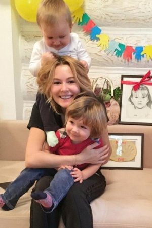 И вот сегодня она поделилась фотографией, на которой запечатлена она и ее сынишки, причем лицо Максима можно рассмотреть.